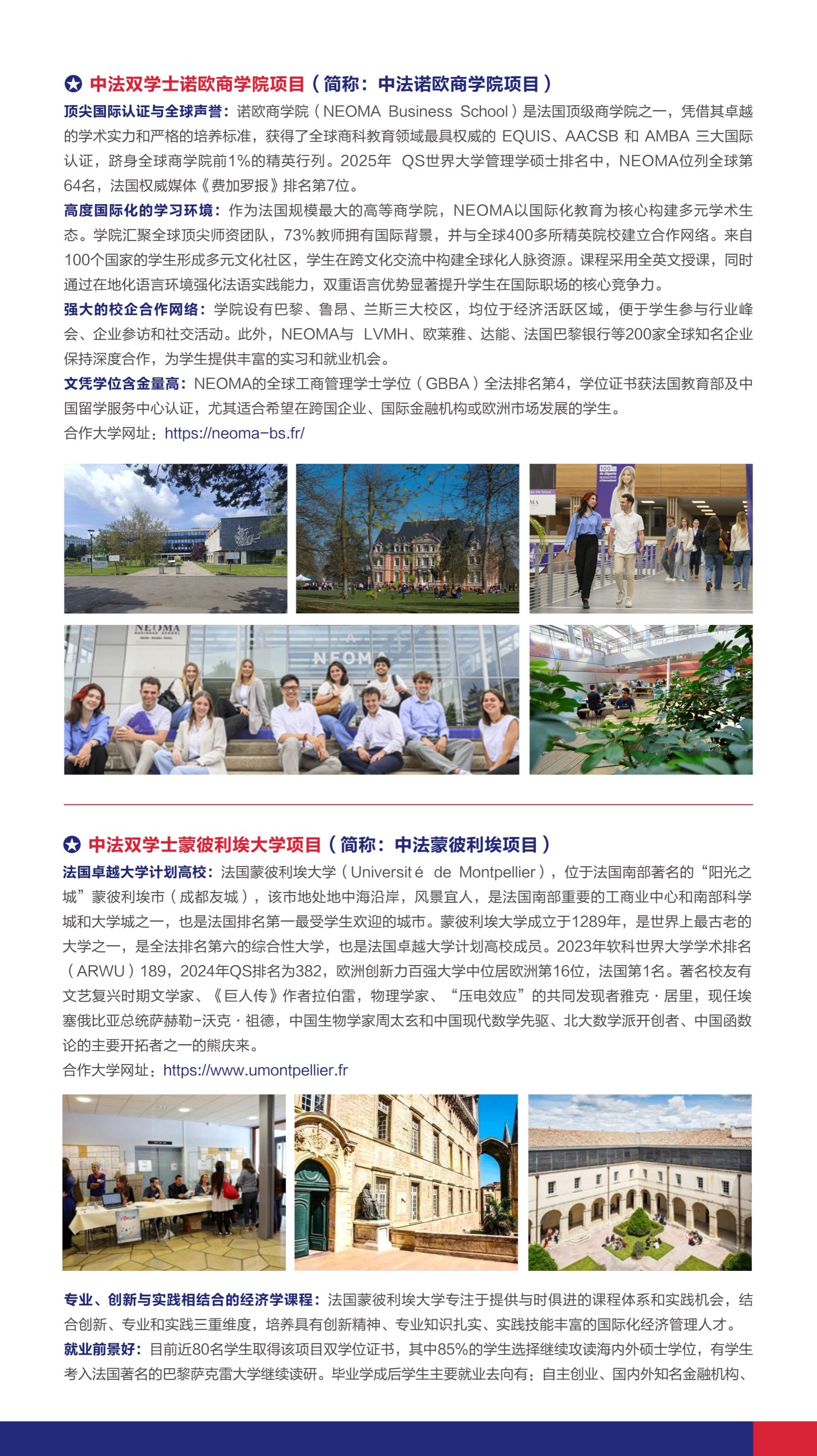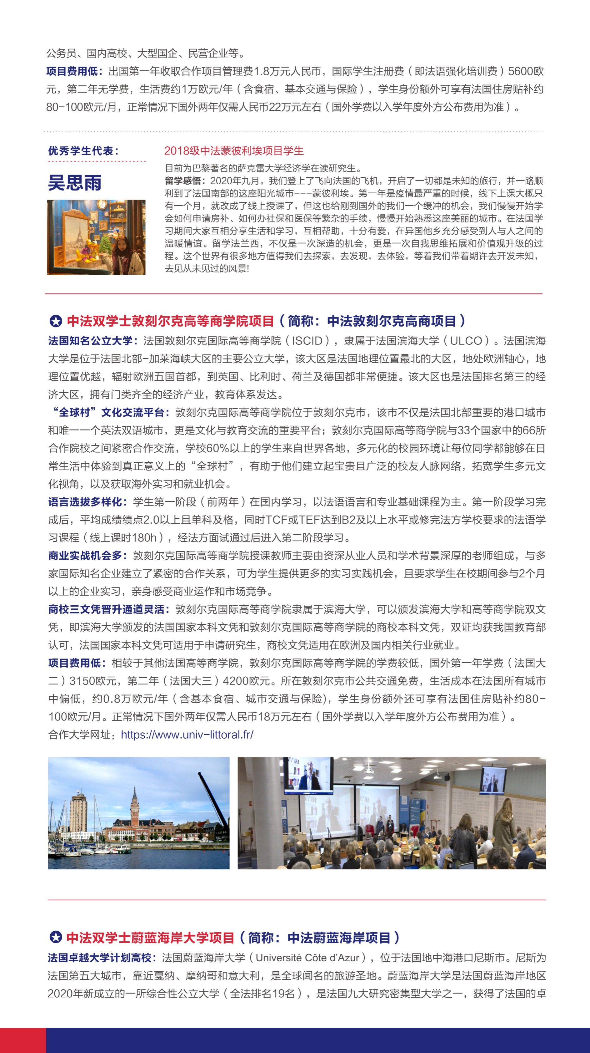 更正说明:中法蒙特利埃大学项目,中法蔚蓝海岸大学项目的培养模式为中法双语教学,表格中“中英双语教学”为排版错误!
