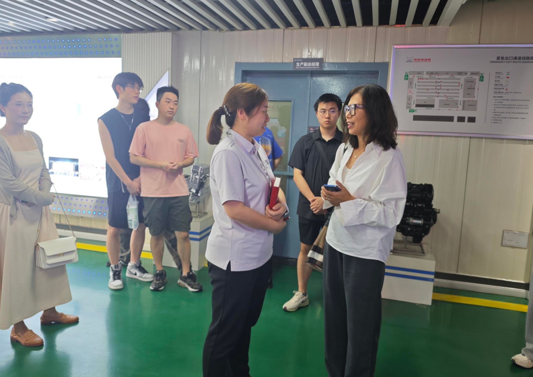 教师Liwei深入生产线现场,针对“智能工厂供应链管理”进行实时教学,结合宗申集团相关负责人的讲解,阐释数字化工具如何提升供应链效率与抗风险能力。