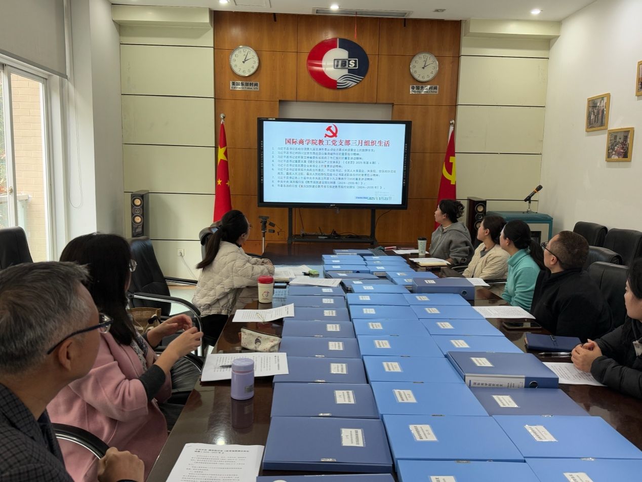 2025年3月21日下午,国际商学院教工党支部在学院60510会议室召开了3月份组织生活会,会议由教工党支部书记陈京晶主持,教工支部全体党员参加了会议。