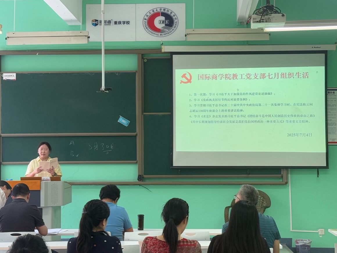 2025年7月4日下午,国际商学院教工党支部在学院502教室召开了7月份组织生活会,会议由教工党支部书记陈京晶主持,教工支部全体党员参加了会议。